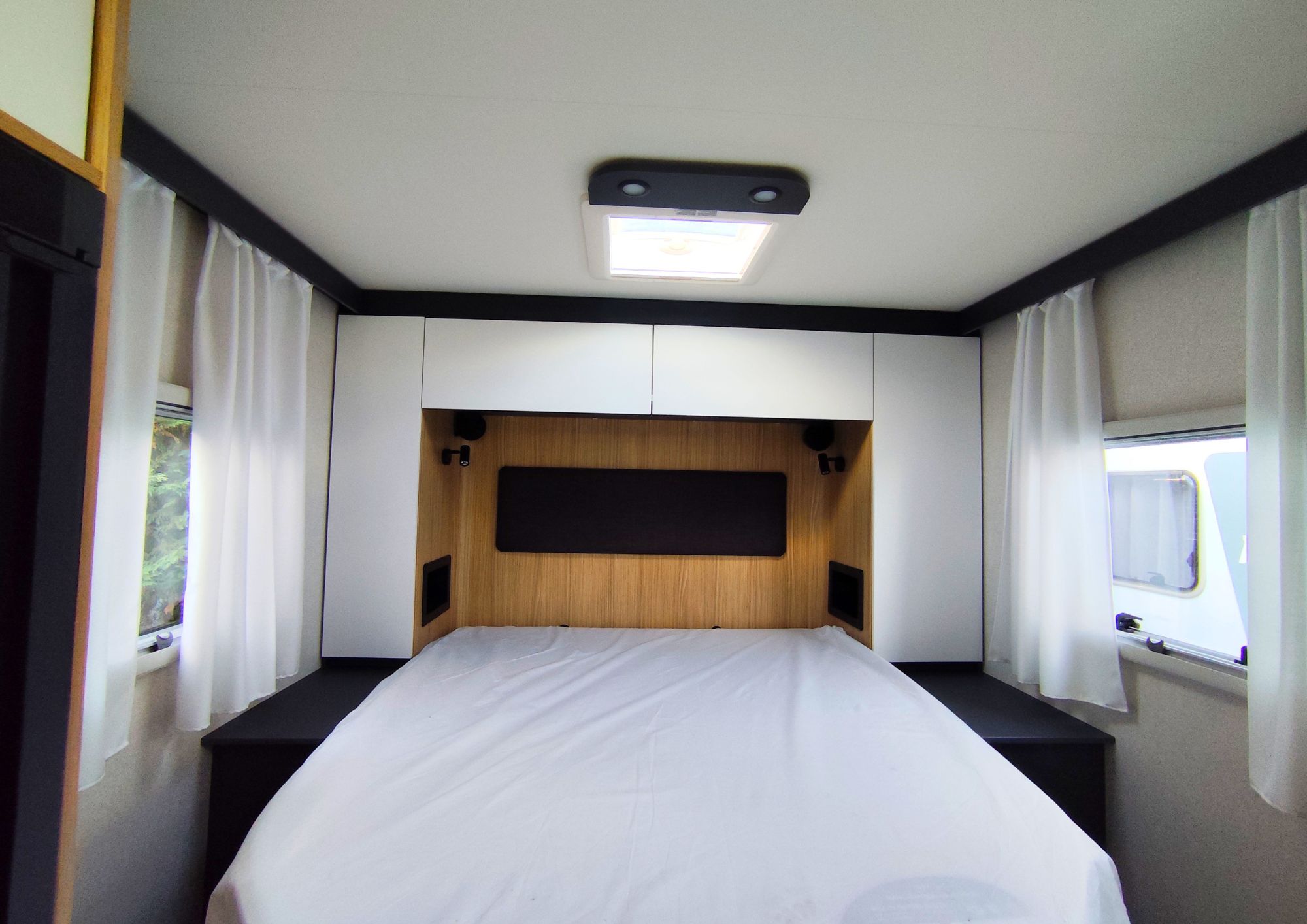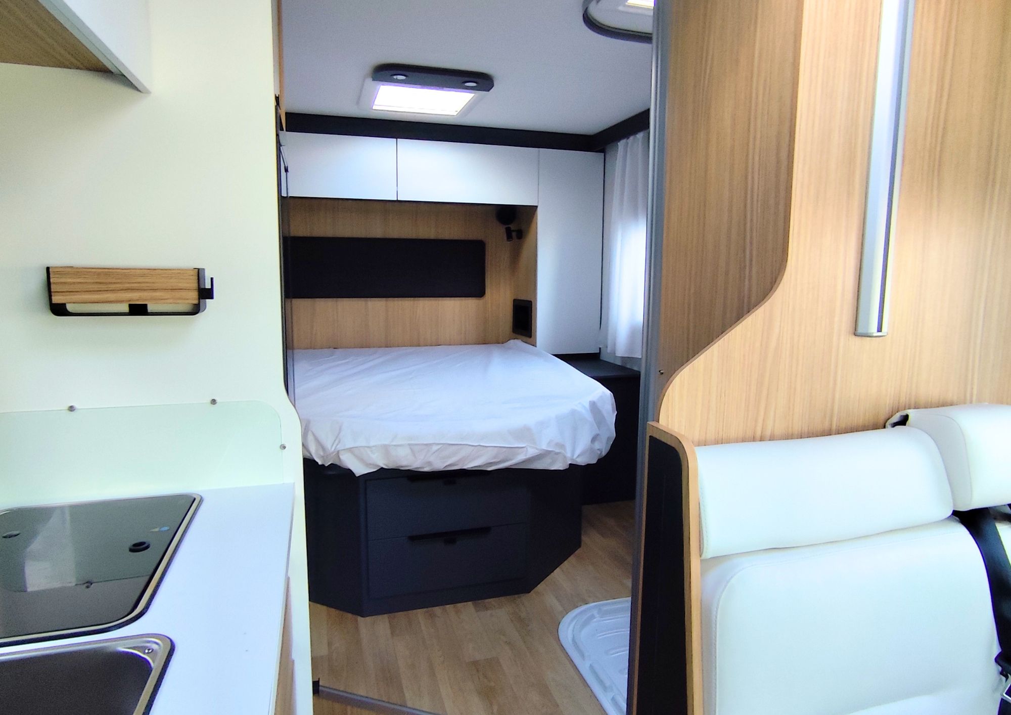 Côté équipements, tout est prévu pour faciliter vos voyages : caméra de recul, store extérieur, porte-vélos, autoradio avec écran 6,7” DAB, ainsi qu’un grand réservoir de carburant de 90 L pour partir sereinement.